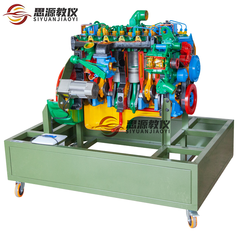 该设备采用康明斯6BT柴油发动机总成进行剖面处理,各部件齐全,剖面位置合理,能全面展示柴油发动机内外部结构和部件的运动情况,适用于车辆培训机构对柴油发动机原理和机械机构的教学需要。