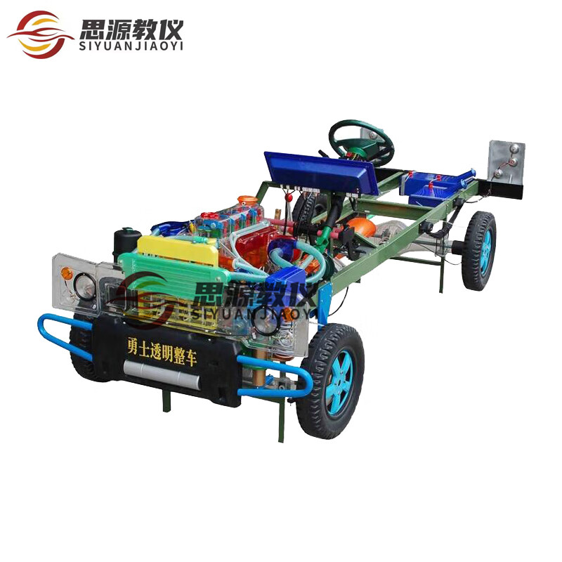 本品选用透明有机玻璃制作,内中部件均以上硬质塑料加工,利用螺丝固定在金属高温烘漆而成的车架上。各总成都以压模成形加工,代替过去用胶水粘合的办法,使本品在牢固度上有很大的提高。发动机总成,以电力驱动,油门设有调速装置,能演示发动机转速的高低。离合器分离明显,操纵灵活,离合器外壳整体压模而成,变速器的各档齿轮用各种颜色表示,操纵自如,其中主减速,差速,转动灵活,车轮对开压铸,刻有防滑槽纹,看上去美观大方。转向装置以及电瓶、油箱、水箱,做工精细、富有光泽。制动管路分布清楚,一目了然。电路采用对插件前后分布,前灯架用透明有机玻璃压模成整体,看上去美观逼真,仪表板及后灯架逼真坚固。以上对本品做一简单的特点介绍。